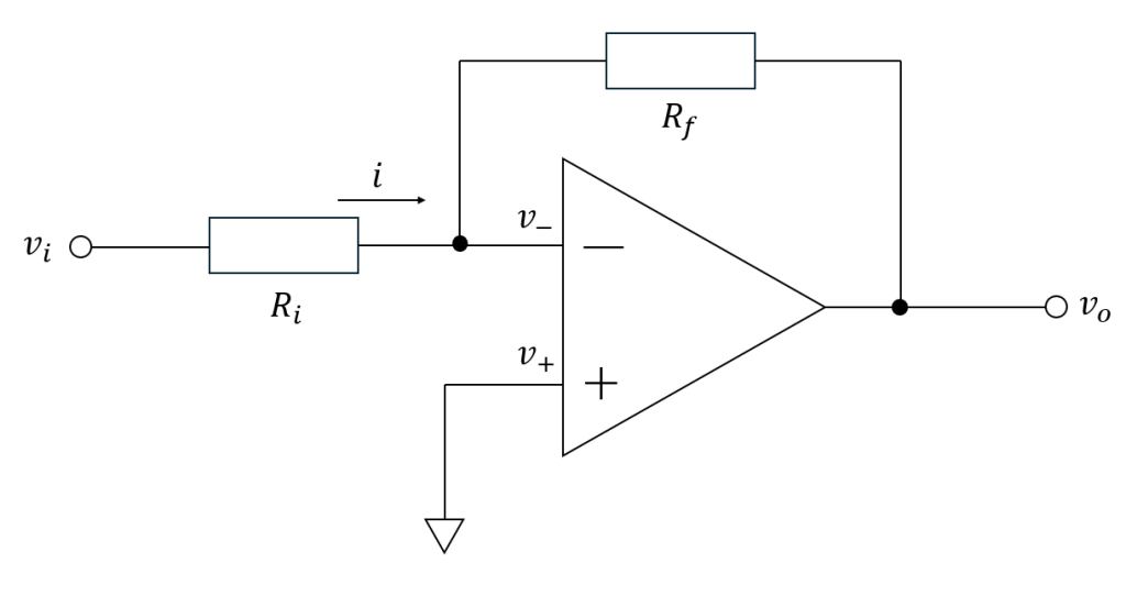 以下の形で示される回路のことを,反転増幅回路と呼びます: